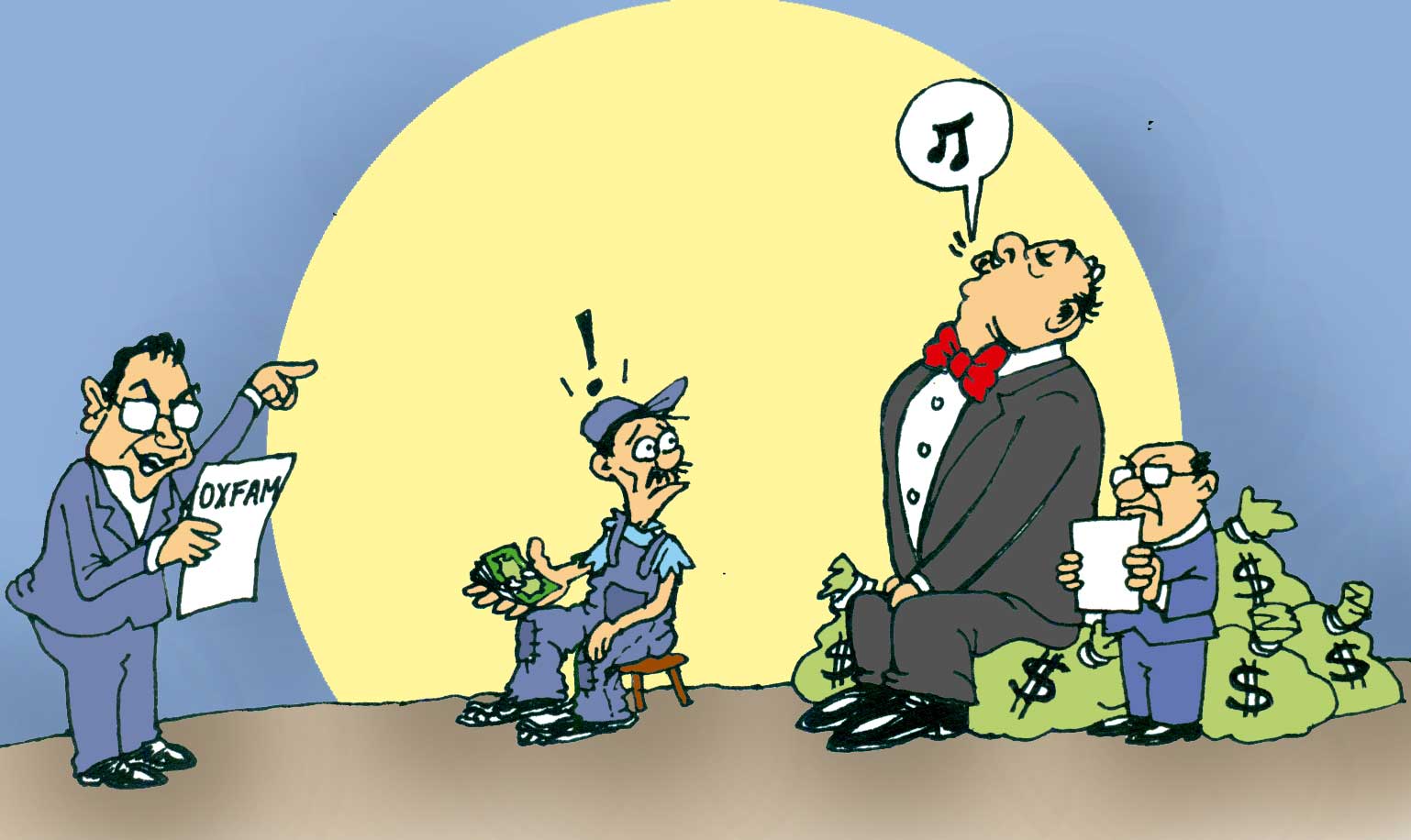 El informe de la Oxfam tiene una enorme virtud: que además de diagnosticar la acelerada desigualdad económica en el mundo y sus terribles consecuencias sociales, propone las siguientes medidas para abatirla: que se apliquen más impuestos a los ultrarricos, a fin de reducir su concentración de poder y la desigualdad económica de las clases con bajos ingresos; que los gobiernos busquen la forma de poner en vigor esta propuesta y que apliquen otras formas de tributación de los demás ricos. Es por esta vía, enfatiza la organización, como puede lograrse “un mundo más justo, sostenible y sin pobreza”.