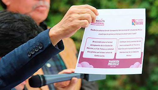 Hoy por fin arranca la primera "consulta" del gobierno electo de Andrés Manuel López Obrador; el resultado no es tan fácil deducirlo debido a todo lo que se ha estado diciendo y a la promesa de campaña que él hizo de cancelar la construcción del Aeropuerto en Texcoco.