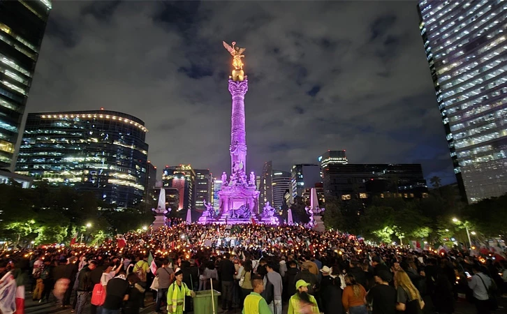 Con velas y banderas, miles de mexicanos realizaron una concentración en el Ángel de la Independencia en la Ciudad de México para rechazar la reforma al Poder Judicial impulsada por el presidente Andrés Manuel López Obrador (AMLO) y su partido Morena.