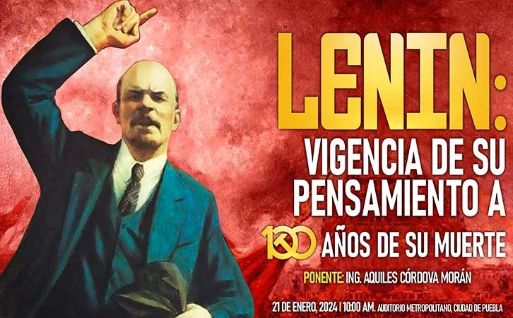 El próximo 21 de enero, el ingeniero Aquiles Córdova impartirá la conferencia "Lenin: Vigencia de su pensamiento a 100 años de su muerte", en el Auditorio Metropolitano de la ciudad de Puebla.