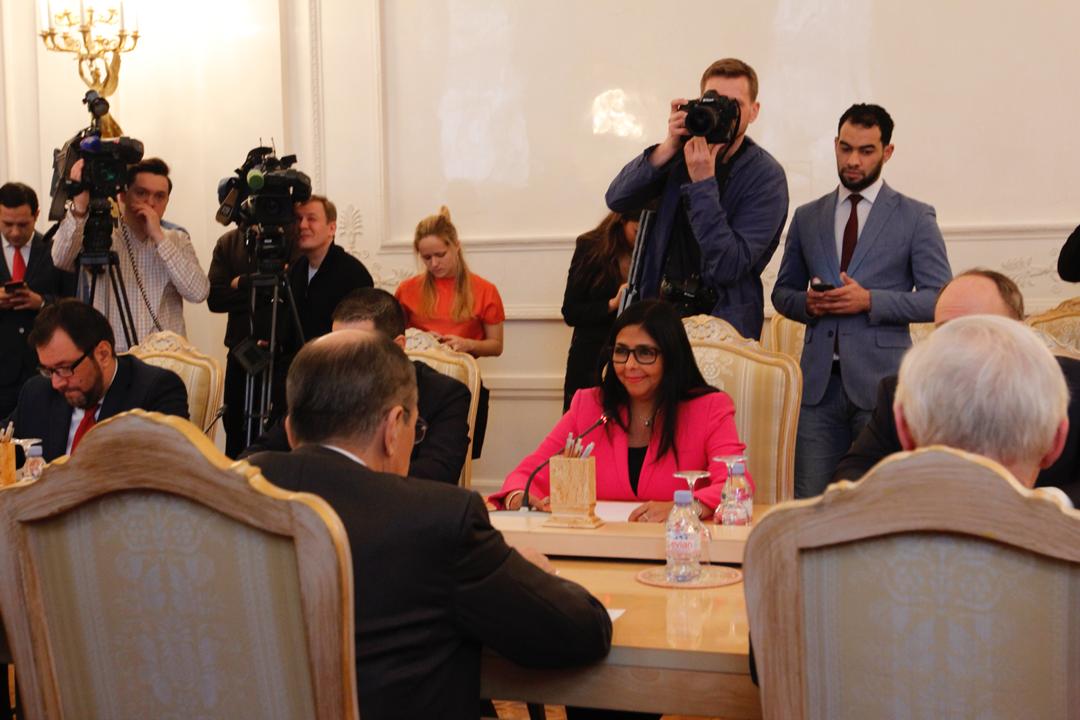 "Traigo el agradecimiento personal del presidente Nicolás Maduro para el presidente Putin, para usted, para el Gobierno ruso y para su pueblo por el apoyo y el respaldo que dan al pueblo venezolano", sostuvo la vicepresidenta.