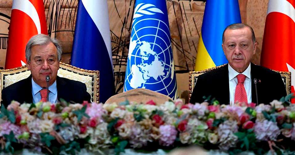 El ministro de Defensa ruso, Serguéi Shoigú, y el presidente turco Recep Tayyip Erdogan, suscribieron un acuerdo sobre la exportación de granos desde los puertos de Ucrania con la mediación del secretario general de la ONU, Antonio Guterres.