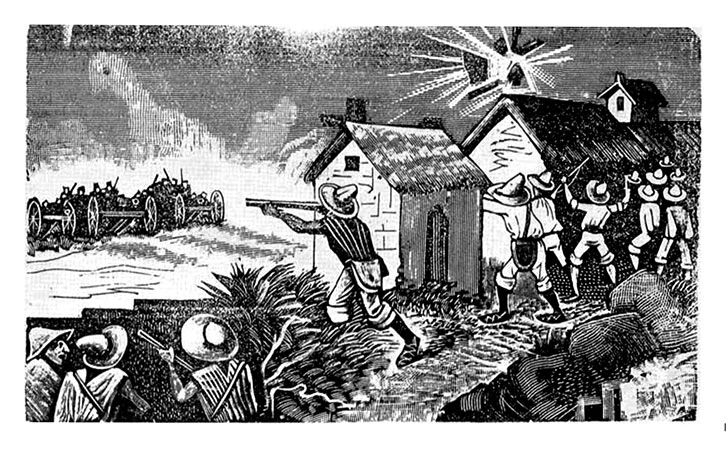 El siete de diciembre de 1891, los tomochitecos fueron atacados por primera vez por las fuerzas del Ejército; sin embargo, el gobierno estatal no esperaba que los pobladores respondieran con tanta valentía y arrojo que fueron derrotadas. Después de este suceso, los tomochitecos decidieron ir a ver a la Santa de Cabora para que los aconsejara, pues ya eran ampliamente conocidos sus “poderes divinos”.