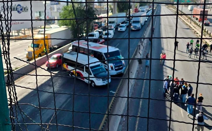 Este viernes 10 de enero, transportistas de la empresa Autotransportes México Melchor Ocampo (AMMOSA) bloquearon la autopista México-Querétaro, a la altura de Perinorte, en el municipio de Cuautitlán Izcalli, Estado de México.