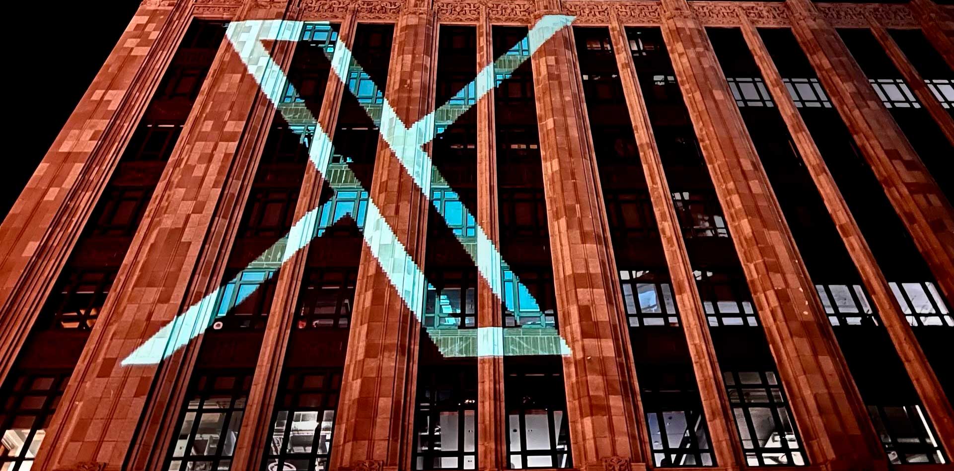 Musk sustituyó su icono en Twitter por una X blanca sobre fondo negro y publicó una foto del diseño proyectado sobre la sede de la compañía en San Francisco.