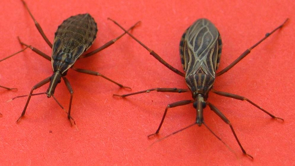 Los triatóminos son portadores del protozoo Trypanosoma cruzi. Estos insectos succionan sangre, y después de picar a una persona defecan en la herida, dando oportunidad a que el parásito se introduzca en el organismo y se expanda a través del torrente sanguíneo.