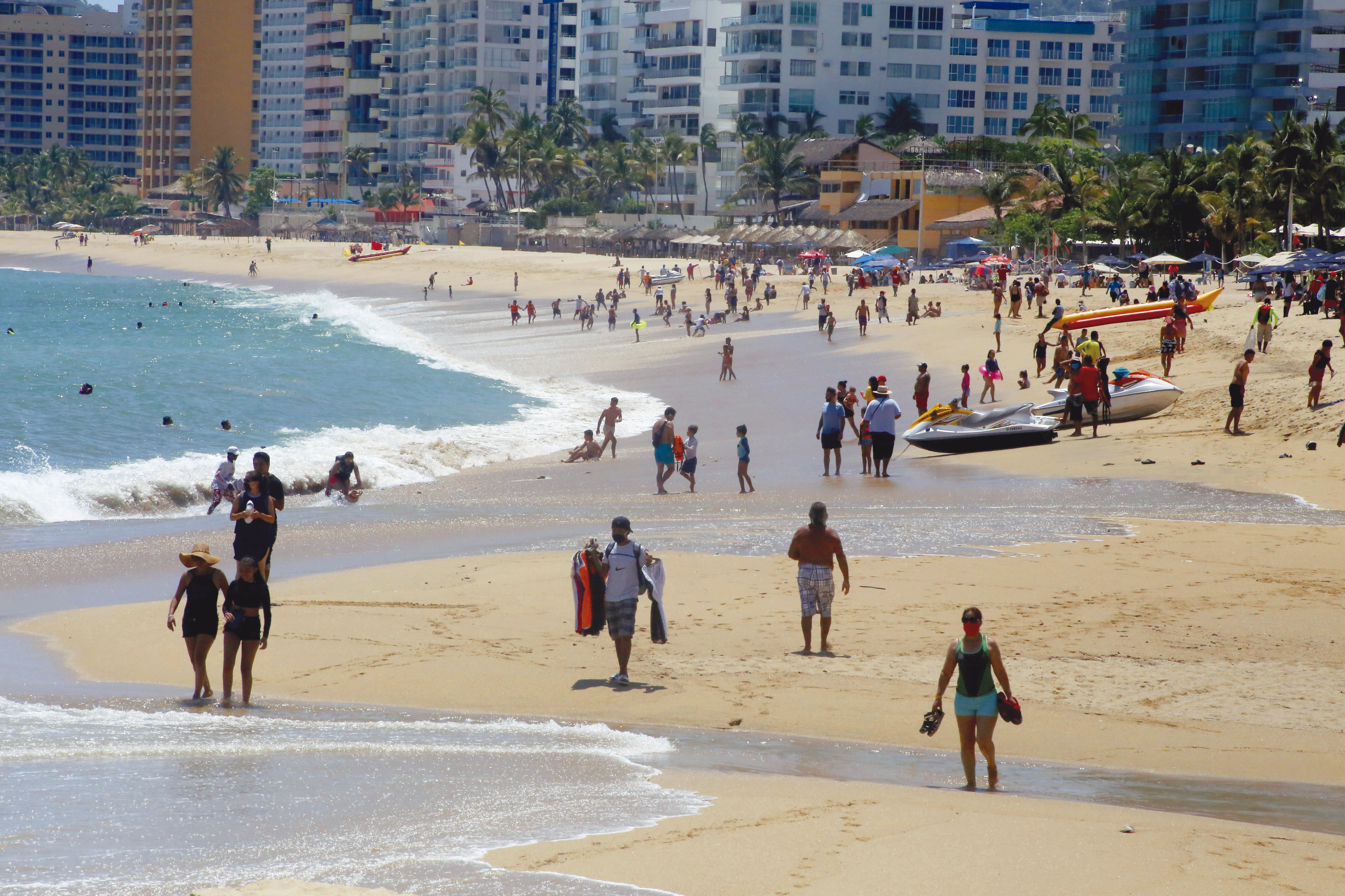 A lo largo de los 20 kilómetros de playa de las tres áreas en que la industria turística divide a Acapulco (Tradicional, Dorada y Diamante) laboran miles de trabajadores informales que lo mismo ofrecen antojitos y bebidas, que servicios náuticos para sobrevivir a la crisis económica agravada por la pandemia de Covid-19.