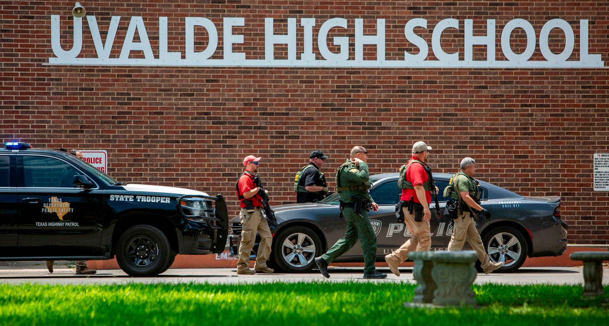 Una ola de ira se extendió por Uvalde el martes por las imágenes de vigilancia de policías con chalecos antibalas que se arremolinaban en el pasillo de la Escuela Primaria Robb mientras un hombre armado perpetraba una masacre dentro de un salón de clases de cuarto grado donde 19 niños y dos maestros fueron asesinados.