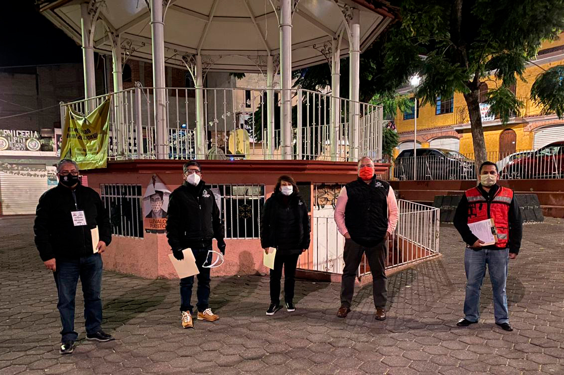 A fin de inhibir las concentraciones masivas y respetar los protocolos sanitarios, los más de 160 funcionarios que conforman la estructura de la Alcaldía Xochimilco, realizan recorridos por los 14 pueblos, 17 barrios de la demarcación y colonias para exhortar a la ciudadanía a cerrar sus negocios antes de las 22:00 horas, además de promover la sana distancia, uso adecuado de cubrebocas y gel antibacterial, entre otros.
